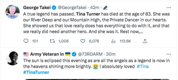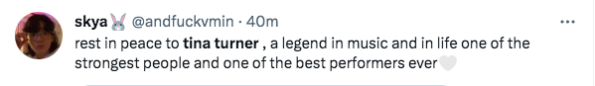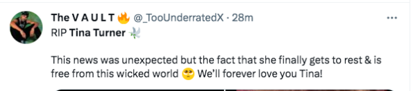 As expected, many people have taken to social media to share their reactions to the news of Tina Turner’s passing.