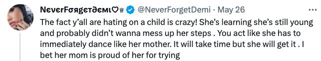 While many seemed to have enjoyed Blue Ivy’s performance, some felt it imperative to give their harsh opinions about her dancing. One user wrote: