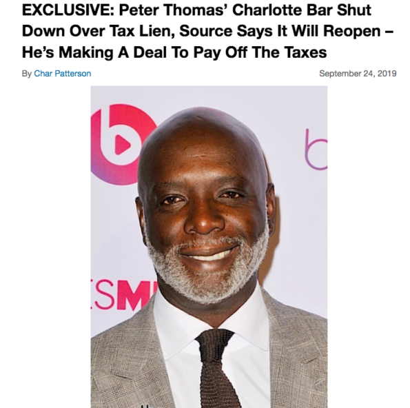 In 2019, theJasmineBRAND exclusively reported that Peter was forced to close his Charlotte bar over a tax lien. He allegedly racked up more than $200,000 in unpaid taxes. The sports bar–called Sports One Charlotte–was said to return without Peter. According to a source, the bar fell off the map due to Peter’s inability to juggle his finances for multiple projects.