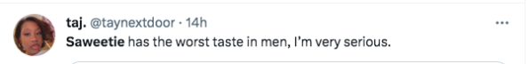 “Saweetie has the worst taste in men, I’m very serious.”