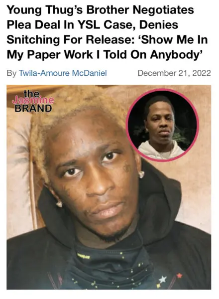 As we previously reported, Young Thug, real name Jeffrey Williams, 31, as well as fellow rap star Gunna and more than 20 other associates were indicted last year on RICO charges. The group is accused of carrying out a number of gang related crimes under the group YSL founded by the “Best Friend” artist. YSL, however, claims to be nothing more than a record label.