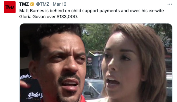 According to a report from RadarOnline, Gloria Govan, 38, filed a suit against her ex-husband Matt Barnes, 43, claiming he abruptly stopped sending her court order child support payments. The former pair divorced back in 2015 following two years of marriage and share twin 14-year-old sons. Reportedly, Barnes was supposed to be forking over $7,000 monthly. It’s noted in the report that the number was reduced from the $20,000 he was initially ordered to pay before retiring from the NBA.