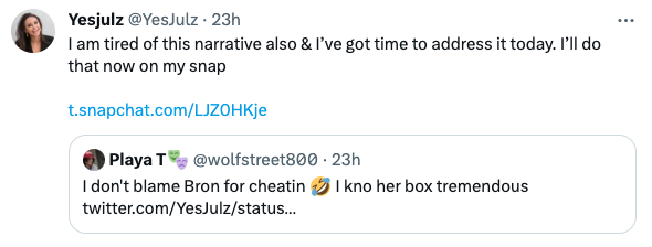 YesJulz is once and for all clarifying the narrative about her relationship with Lebron James.