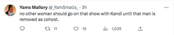 “no other woman should go on that show with Kandi until that man is removed as cohost.”