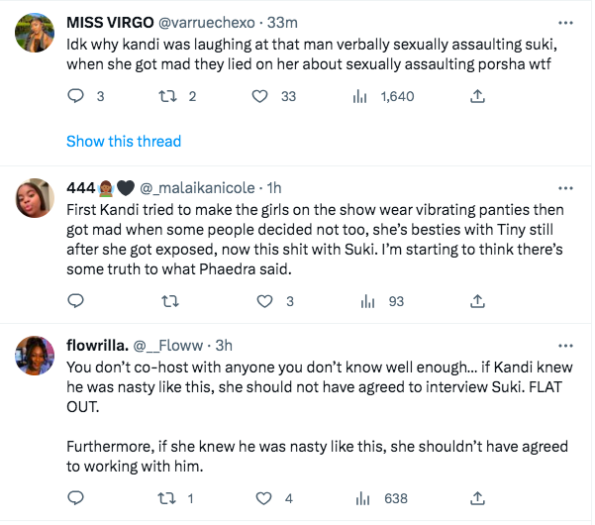 “For kandi to be on the tv crying about rape/date rape allegations, i would’ve thought she would’ve stopped that n*gga for harrassing that girl like that. Tell him to stop or get tf out.”