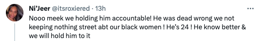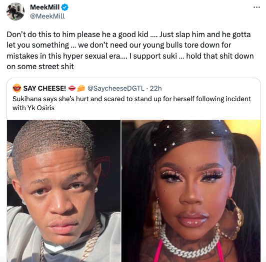 “Don’t do this to him please he a good kid …. Just slap him and he gotta let you something … we don’t need our young bulls tore down for mistakes in this hyper sexual era…. I support suki … hold that sh*t down on some street sh*t”