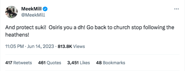 “And protect suki! Osiris you a dh! Go back to church stop following the heathens!”