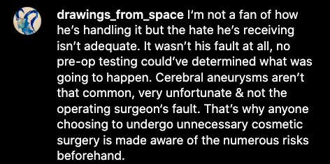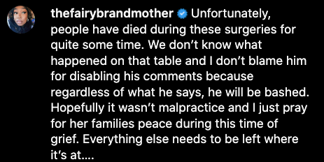 After her death, Dr. Zach’s history of suing patients who claimed he “botched” their procedures came to light, leading many to voice their concerns over how he handled Jacky . Users debated the issue in theJasmineBrand’s comments section with many varied opinions.