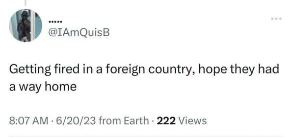 “Getting fired in a foreign country, hope they had a way home.”