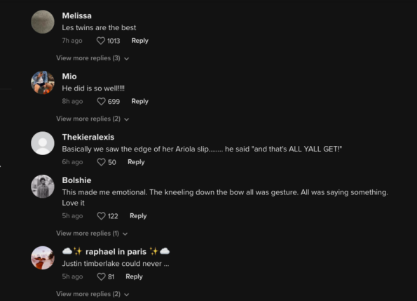In the now-viral footage of the incident, Beyoncé wore a hot pink sequin dress as she performed her hit tune “Break My Soul.” As the entertainer danced her dress started to move out of place, slightly exposing what appeared to be her nipple cover. Thankfully, one of the Les Twins noticed the issue and wasted no time covering Beyoncé so he could fix her wardrobe. The exchange happened so fast that it almost went unnoticed. However, another concertgoer shared a different angle of the moment which better displayed the Les Twins’ quick thinking.