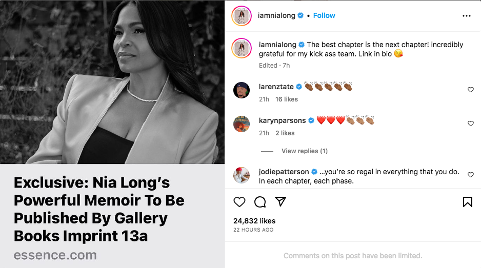Long took to her Instagram to express her gratitude for having the opportunity to bring her anticipated biography to the shelves.