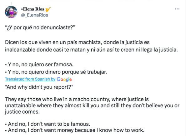 “They say those who live in a macho country, where justice is unattainable where they almost kill you and still they don’t believe you or justice comes.”