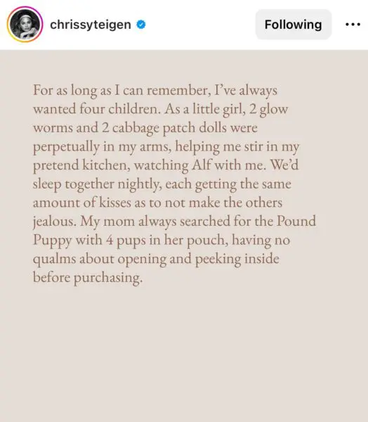 Teigen began the lengthy post,
