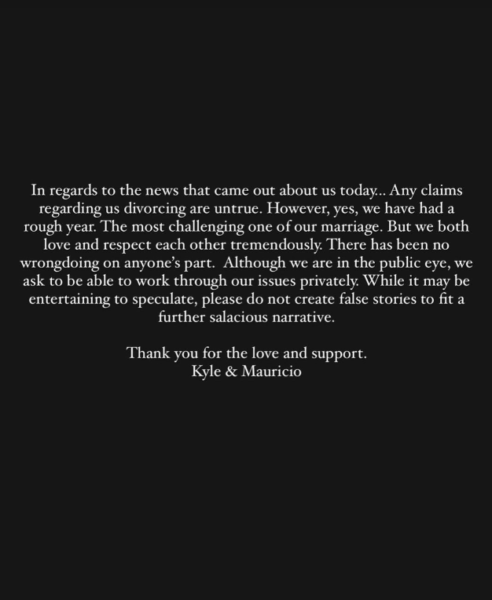 “Kyle and Mauricio have been separated for a while now but are still living under the same roof. They remain amicable as they figure out what’s next for them and their family.”