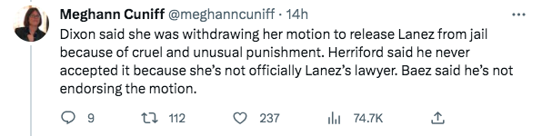 Additionally, since Dixon hadn’t been brought on as an official representative of Lanez, Meghann Cuniff tweeted that Judge David Herriford never accepted her motion, and Jose Baez refused to endorse it.