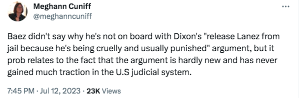 An article from Meghann Cuniff documented that Dixon cited “evidentiary errors” and violation of the California Racial Justice Act as the reason(s) behind her push for a new trial that would (possibly) let the “Say It” phenomenon off the hook. She (seemingly) believes that Lanez is undergoing “cruel” and “unusual” punishment because of his social caliber.