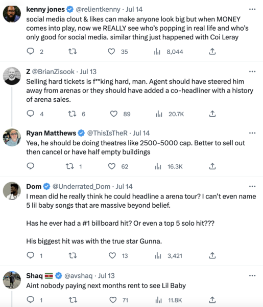 Lil Baby’s tour is cancelling dates due to lack of ticket sales pic.twitter.com/d1xOmPPS5Y