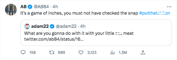“It’s a game of inches, you must not have checked the snap #putthatsh*ton”