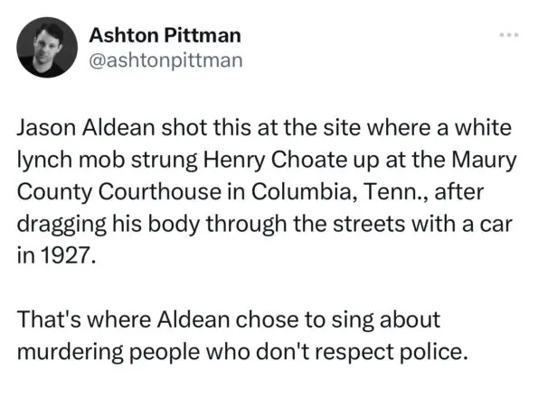 He then shared a tweet detailing the problems with Aldean’s video shoot location.
