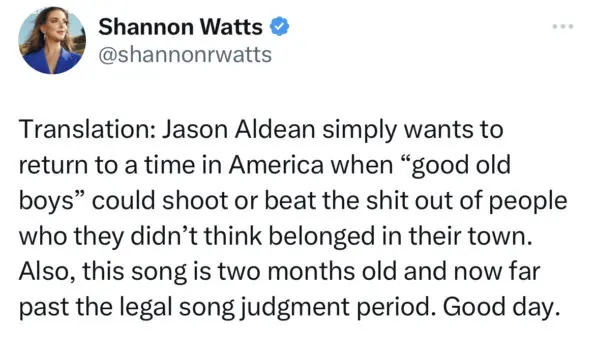 “Good morning, y’all… to everyone except @Jason_Aldean!”