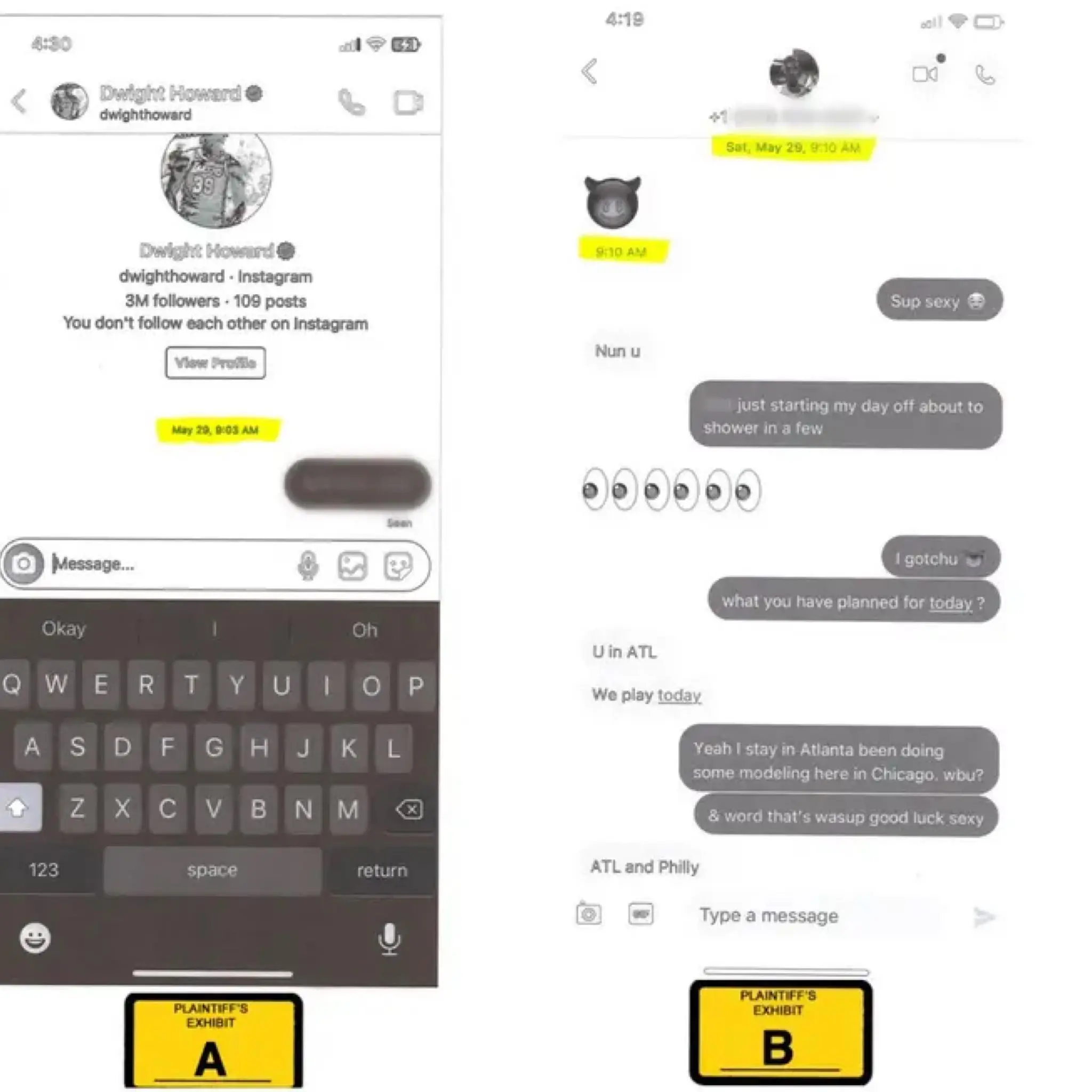 Initially, Stephen Harper reached out to the NBA star through a burner account, sending Howard his cell phone number and later his main account handle and photos of himself. The accuser recalled Howard responding with a suggestive “devil emoji.”