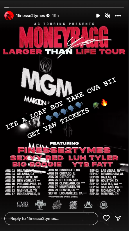 Finesse doesn’t appear to be too worried about the outcome of all of this, though. Amid the allegations, he was caught on Instagram promoting his new tour.