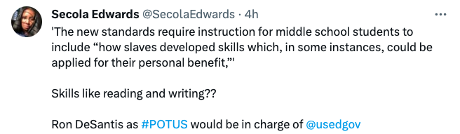Since news of the new standard was announced, many online have shared concern and outrage over the decision. One user pointed out that should DeSantis be successful in his presidential bid, he would govern the entire country’s Department of Education. Which could have significant adverse effects on many states, not just Florida.