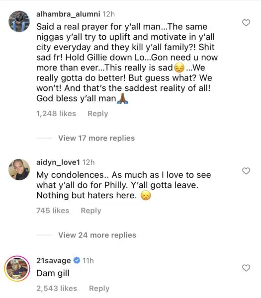Our condolences goes out to Gillie Da Kid and his family during this difficult time.