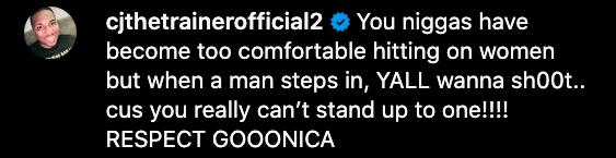 “You don’t hit n f***ing lady like that….f**k a** n***a”
