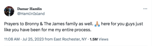 Among those giving the James family well wishes is NFL standout Damar Hamlin, who had a heart arrest earlier this year while playing for the Buffalo Bills.