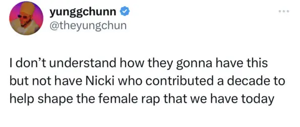 In addition to Nicki’s missing appearance, fellow rapper Missy Elliott and several other notable female rap artists have seemingly been left out of the doc as well. As of now, it’s unclear why Missy Elliott allegedly passed up on the docuseries. However, it’s speculated that Nicki was left out of the project because she didn’t clear the licensing needed for her work to be featured.