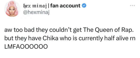 The limited doc series has commentary from iconic women who have contributed to the culture and the genre’s history, such as Queen Latifah, Roxanne Shanté, MC Lyte, YoYo, and Remy Ma. Current rising stars on the hip-hop scene also appear in the project, including Ice Spice, Chika, Latto, Coi Leray, and Saweetie. However, it didn’t take long for fans to notice the preview didn’t include rapper Nicki Minaj, who has been an influential figure in hip-hop music since the early 2000s.