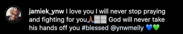 “love you I will never stop praying and fighting for you God will never take his hands off you #blessed @ynwmelly”