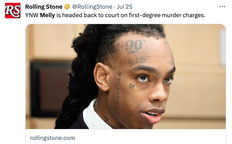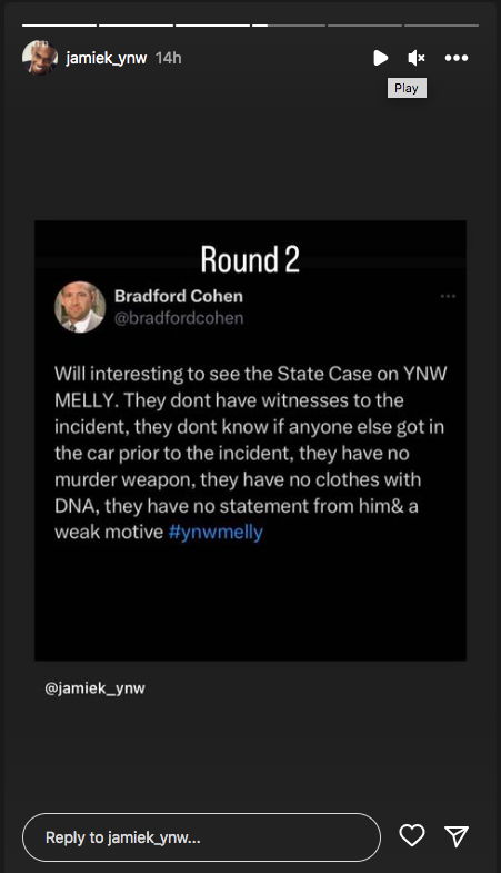 “Will [be] interesting to see the State Case on YNW MELLY. They dont have witnesses to the incident, they dont know if anyone else got in the car prior to the incident, they have no murder weapon, they have no clothes with DNA, they have no statement from him& a weak motive #ynwmelly”