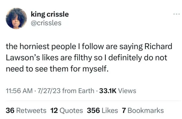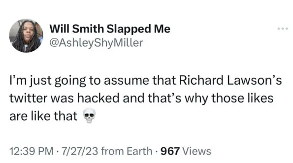 “I’m just going to assume that Richard Lawson’s twitter was hacked and that’s why those likes are like that.”