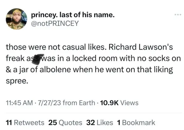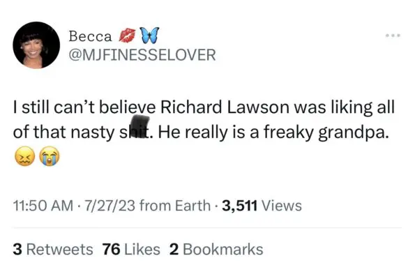 “I really do not like older men, they be next level pervs. Richard Lawson is a nasty old man.”