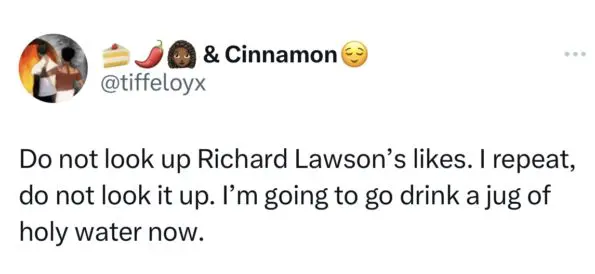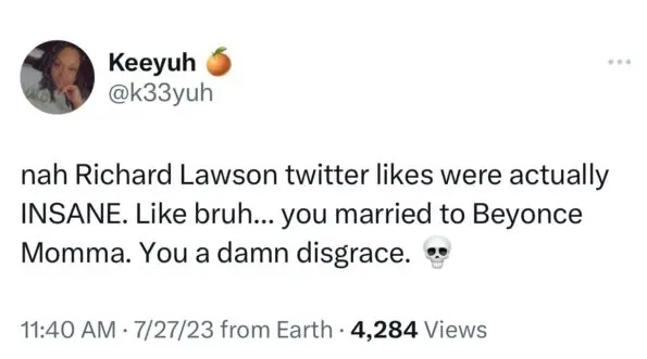 “nah Richard Lawson twitter likes were actually INSANE. Like bruh… you married to Beyonce Momma. You a damn disgrace.”