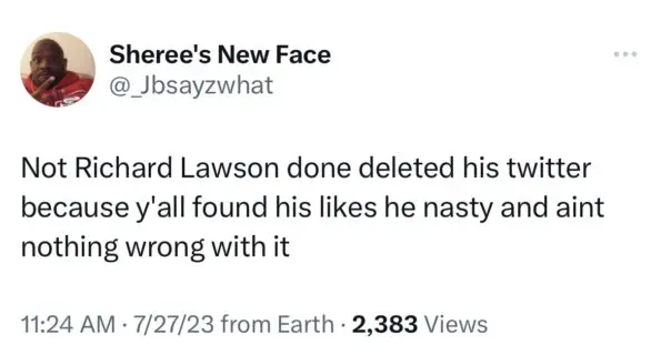 Richard Lawson Trends After Twitter Users Discover Porn & Adult Content In His Likes, Actor Deletes His Account
