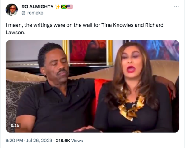 I mean, the writings were on the wall for Tina Knowles and Richard Lawson. pic.twitter.com/A5YCpsSo3o