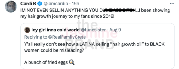 The latter post prompted a direct response from Cardi, who insisted that she isn’t selling anything at all to her audience. She quote tweeted the post, writing: