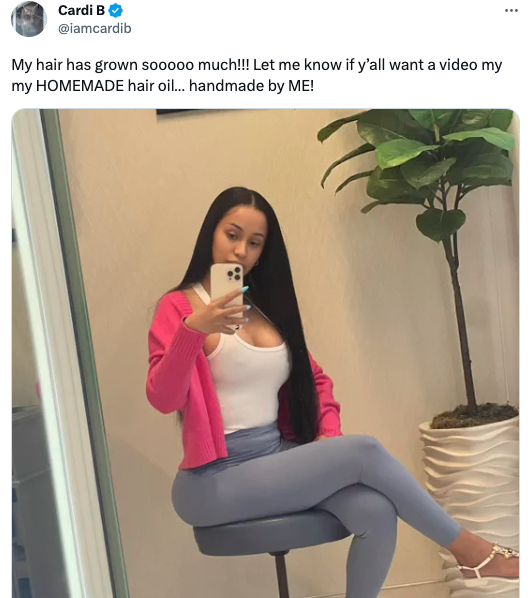 And sharing her journey is certainly what she has been doing. As we’ve been covering since way back in 2019, Cardi has been committed to repairing her damaged hair and speaking on the matter for quite some time. Over the last few years, the celeb has shared several home remedies and has openly discussed with fans her struggles and progress maintaining her crowns natural state. A few times, the “WAP” artist has even shared tutorials on how to make and apply hair care resources and highlighted the benefits of wearing wigs as a protective style.