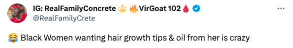 “Black Women wanting hair growth tips & oil from her is crazy”