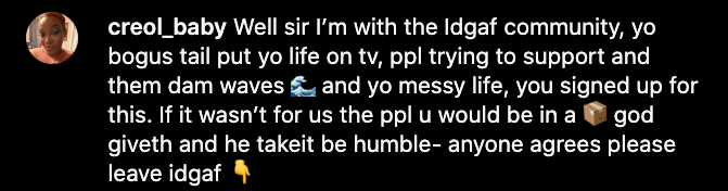 “This sh*t happened so long ago. We moved on. Everybody moved on. So when I post something talking about a shoe or talking about the sky or talking about the day I’m having you don’t have to say ‘be strong keep your head up’ or start talking about the TV sh*t. I been did that…That sh*t in the past for me. It’s old. It’s new for you but it’s the past for me. so I don’t give a f*ck. Okay? Please. Leave me alone. Go on about your business.”