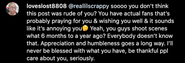 What are your thoughts on Scrappy’s response to the well wishes? Tell us in the comments section below!