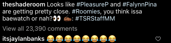 Now, it seems that Falynn has since moved on with Pleasure P, though neither have definitively confirmed nor denied the romance. Reacting to the image and speculations the two are now a couple, Falynn’s most recent ex Jaylan chimed in with his two cents. The TV personality dropped nothing but a few laughing emoji’s in the comment section of the post, prompting many to reply pointing out he seemed “hurt” and “bitter”.
