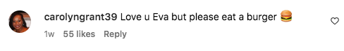 The comments being turned off didn’t stop internet trolls from leaving harsh statements on her account. Many of the naysayers simply went to other photos of Eva and, unfortunately, shared their negative words there. One person said,
