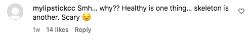 “Smh… why?? Healthy is one thing… skeleton is another. Scary”