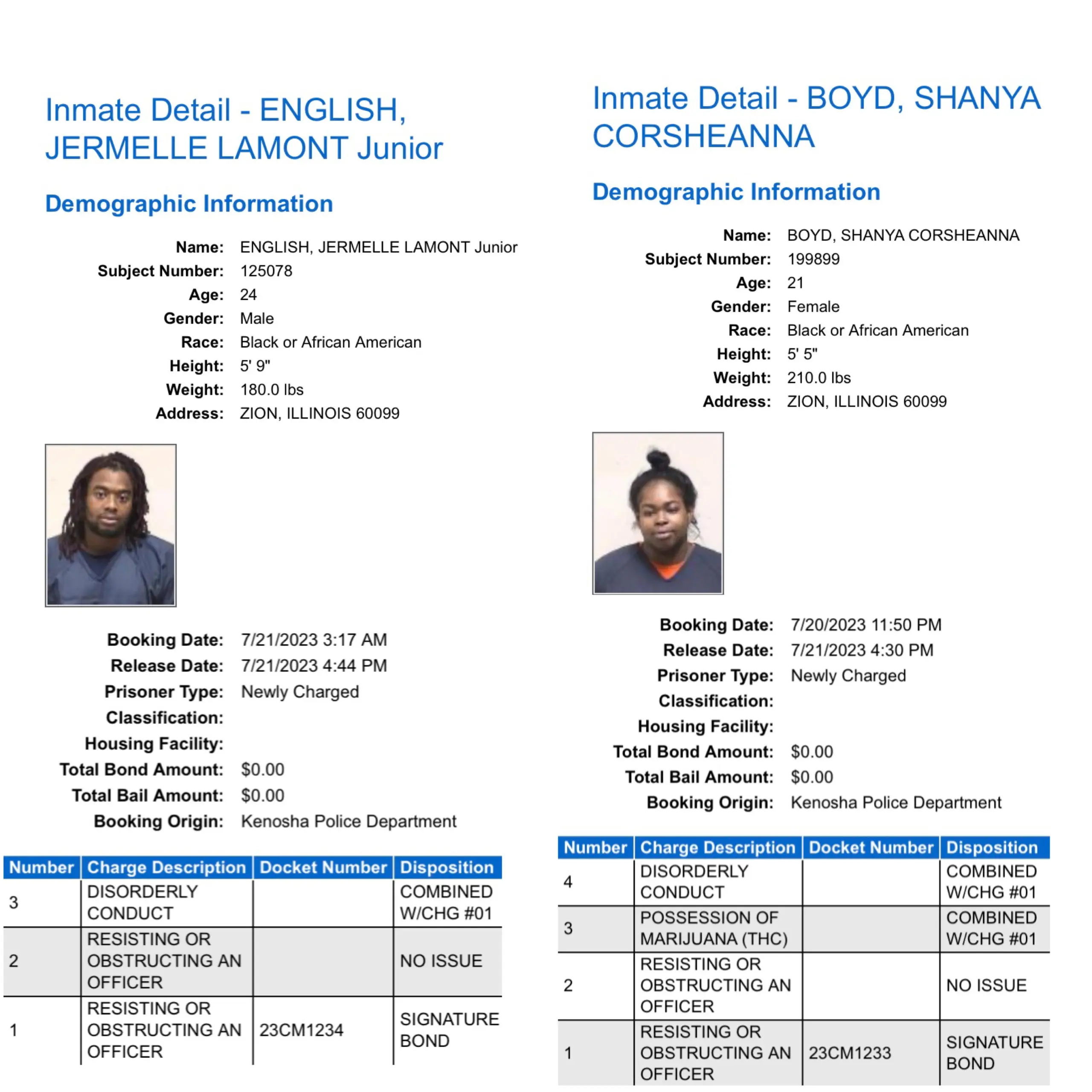 English and Boyd were both charged with resisting or obstructing an officer and disorderly conduct. Additionally, Boyd received another misdemeanor for possession of marijuana.