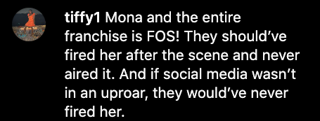 At this time neither the show producers nor Mona has offered any clarity on why the episode was allowed to air. Mena has not publicly addressed the fight nor her firing at this time.