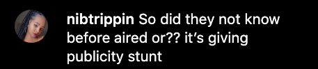 “So did they not know before aired or?? it’s giving publicity stunt”